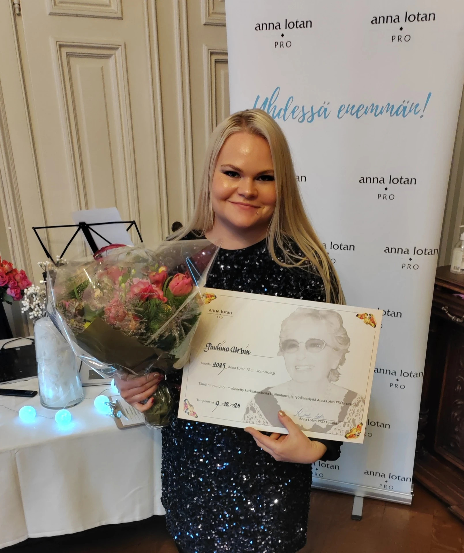 9.12.24 oli jokavuotinen Anna Lotan Pro seminaaripäivä Tampereella. Sain tunnustuksen ja olen vuoden 2025 Anna Lotan Pro kosmetologi ❤️